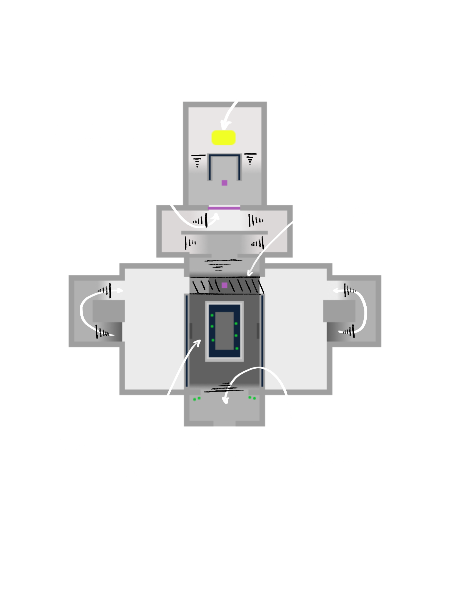 By narrowing the corridor leading up to the reveal, I made the entrance feel larger, thereby amplifying the contrast and impact of the scene. Having three slowly opening gates also adds to the suspense of the reveal.
