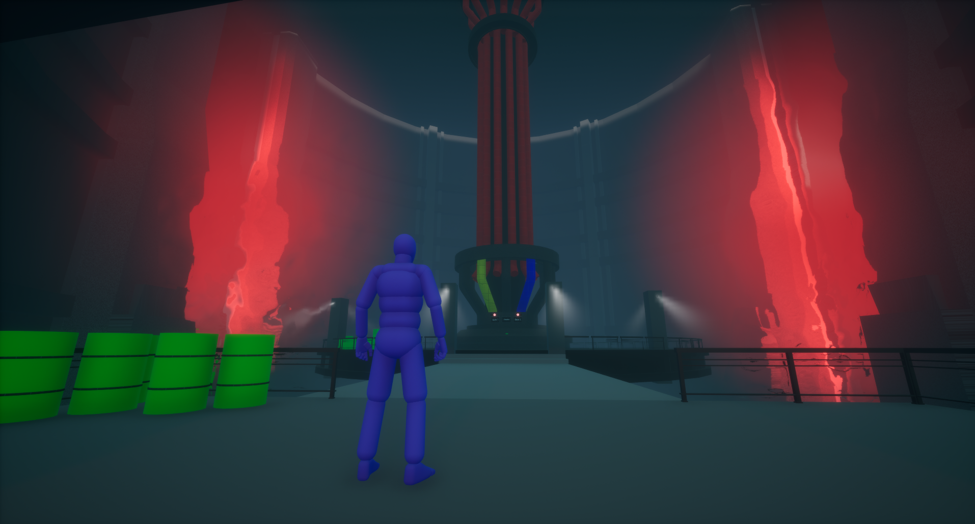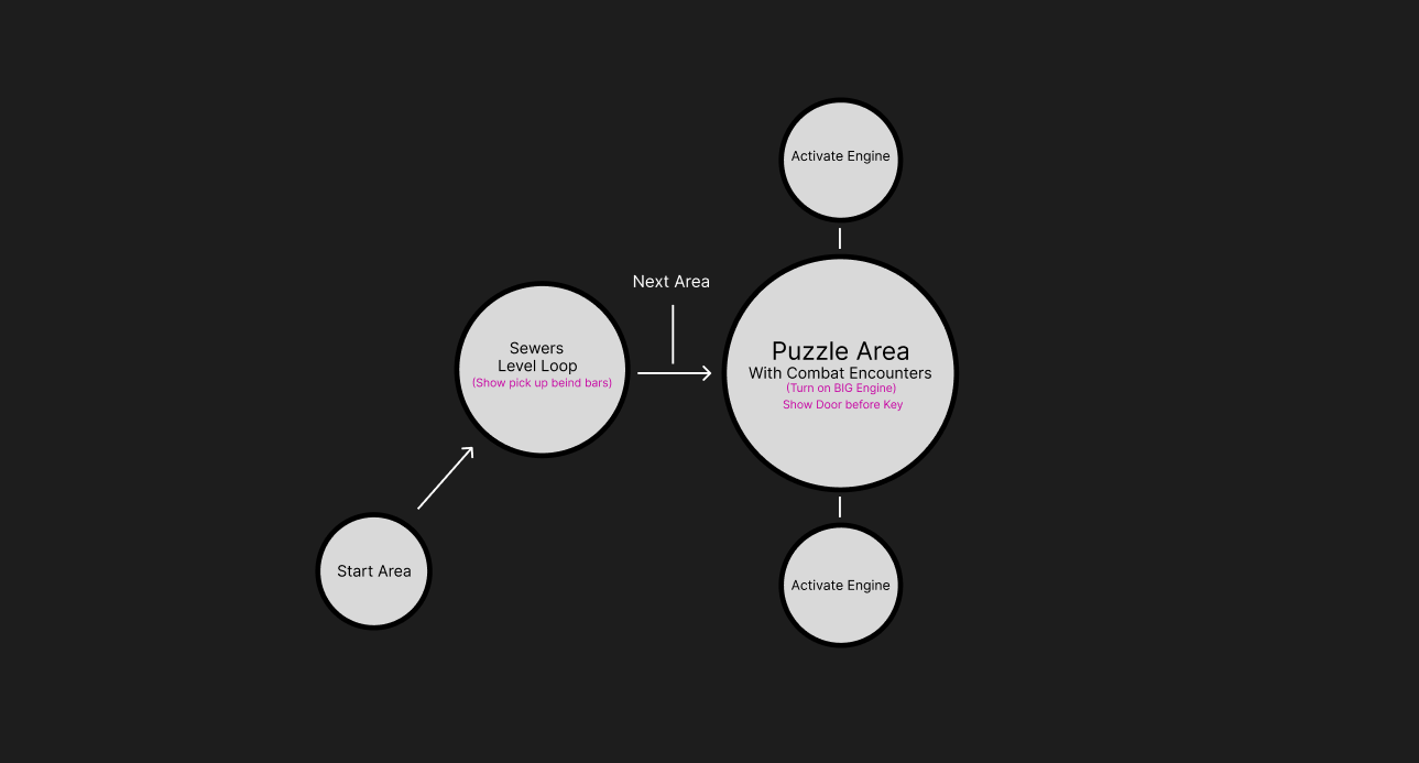 I used the funnel before the reveal technique in this section to enhance the wow-moment when the player first sees the containment chamber and the violent force they must stop.