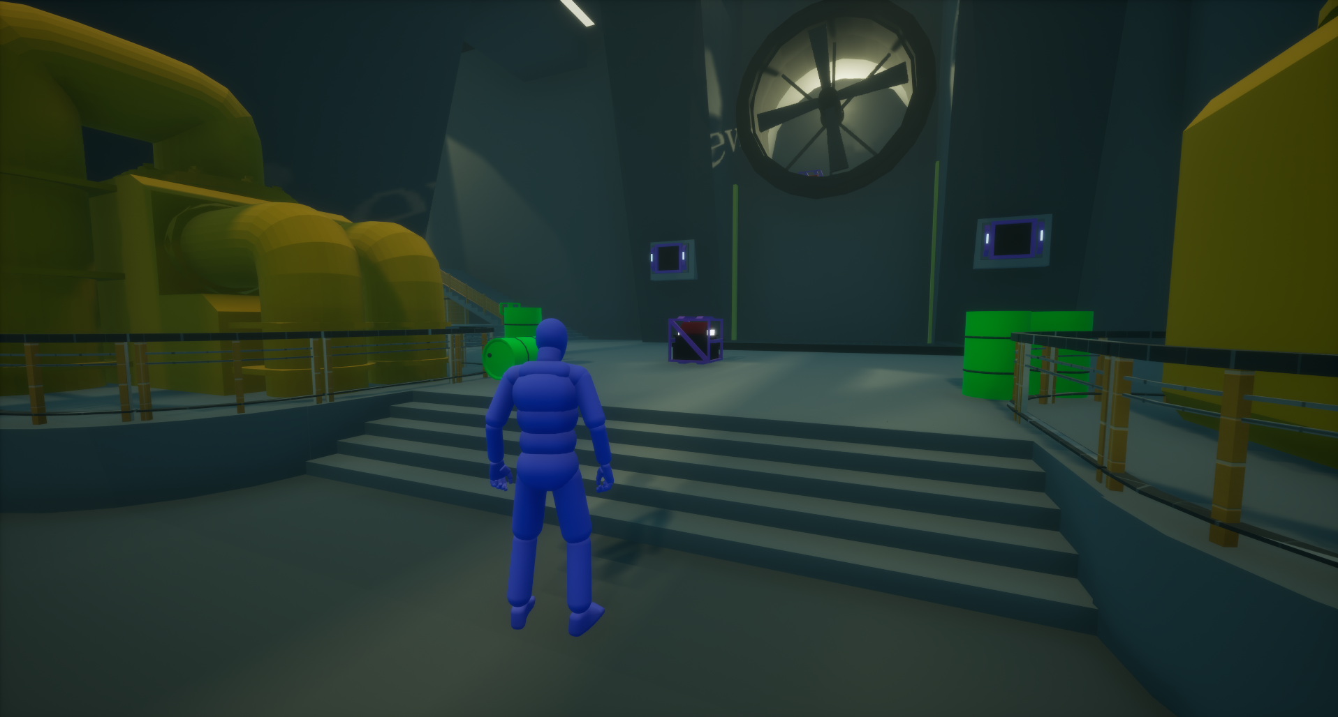 In this second mini puzzle, I wanted to challenge the player to think more critically. The player needs to use a box that is already in use to open the lift. This allows them to access another box located underneath. Once they have this new box, they should place it on the engine and then return the original box to its original position. So both engines can be active.